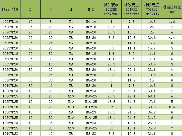 K-DD型橡膠減振器是由配螺栓的上下或單上鋼板,中間圓柱形、圓錐形橡膠體承載,可壓縮和伸長,具有結構簡單、安裝方便,耐油、耐酸堿、抗老化、耐溫等性能,廣泛應用于電子儀器、儀表、設備柜內,也可用于風機、水泵、冷水機組等。由于上下鋼板完全分離,不需另加附件即可減斷聲橋傳遞,是一種非常實用的減振器,尤其適用于電子儀器儀表。